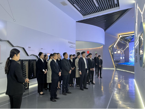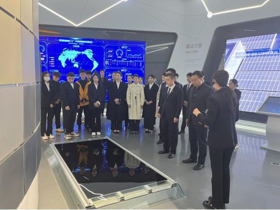 座谈会前,在秦永波等人陪同下,严碧峰一行参观了智慧能源展厅,从能源变迁到光伏历变,见证了隆基绿能科技股份有限公司的发展历史。
