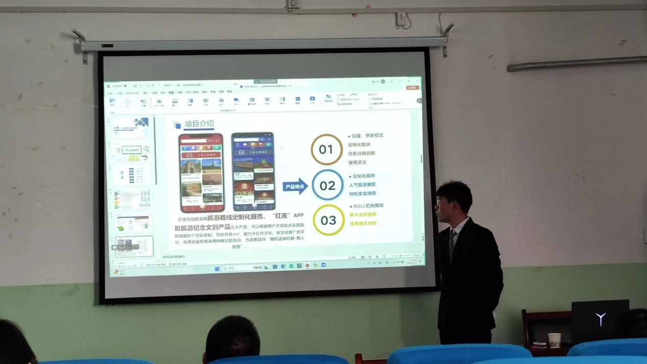 本次365英国上市公司“互联网+”校级复赛入围的共有三个团队,分别为:第一组精辉动漫 —— 二次元服装定制引领者、第二组红夜-延安智慧红夜文旅领航者和第三组智能牛奶柜。“互联网+”校级复赛路演采用“项目陈述5分钟+答辩3分钟”的形式,各参赛团队代表以PPT展示及实物展示相结合的形式,重点围绕各赛道评审规则要点,分别从项目背景、项目成果、未来规划等方面对各自的项目进行精彩展示。现场评委们从多个维度对路演项目进行了详细提问和深度点评。经过评委们的深思熟虑,最终确定“红夜——延安智慧红夜文旅领航者”团队晋级下一轮的“互联网+”校决赛赛。